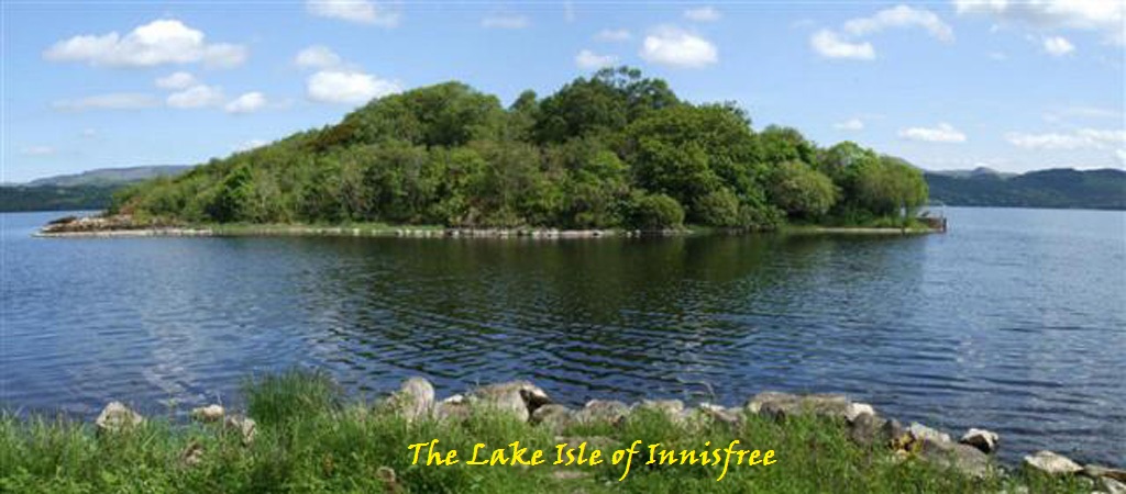 The Lake Isle of Innisfree I will rise and go now, and go to innisfree, And a small cabin build there, of clay and wattles made; Nine bean-rows will I have there, a hive for the honey-bee, And live a lone in the bee-loud glade, And I shall have some peace there, for peace come dropping slow, Dropping from the veils of the morning to where the cricket sings; There midnight's all a glimmer, and noon a purple glow, And evening full of the linnet's wings. I will rise and go now, for always night and day I hear lake water lapping with low sounds by the shore; While I stand on the roadway, or on the pavement's grey, I hear it in the deep heart's core. William Butler Yeats (Written in 1888)